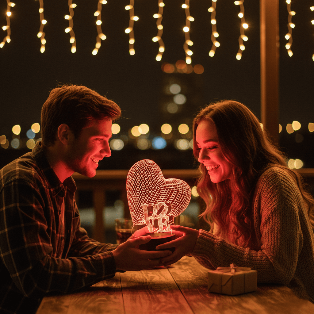 3D Üç Boyutlu Kalpli Love Gece Masa Lambası Renk Değiştiren Sevgiliye Hediye Led Işıklı