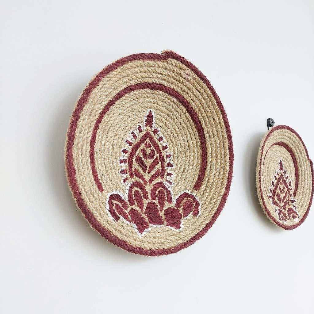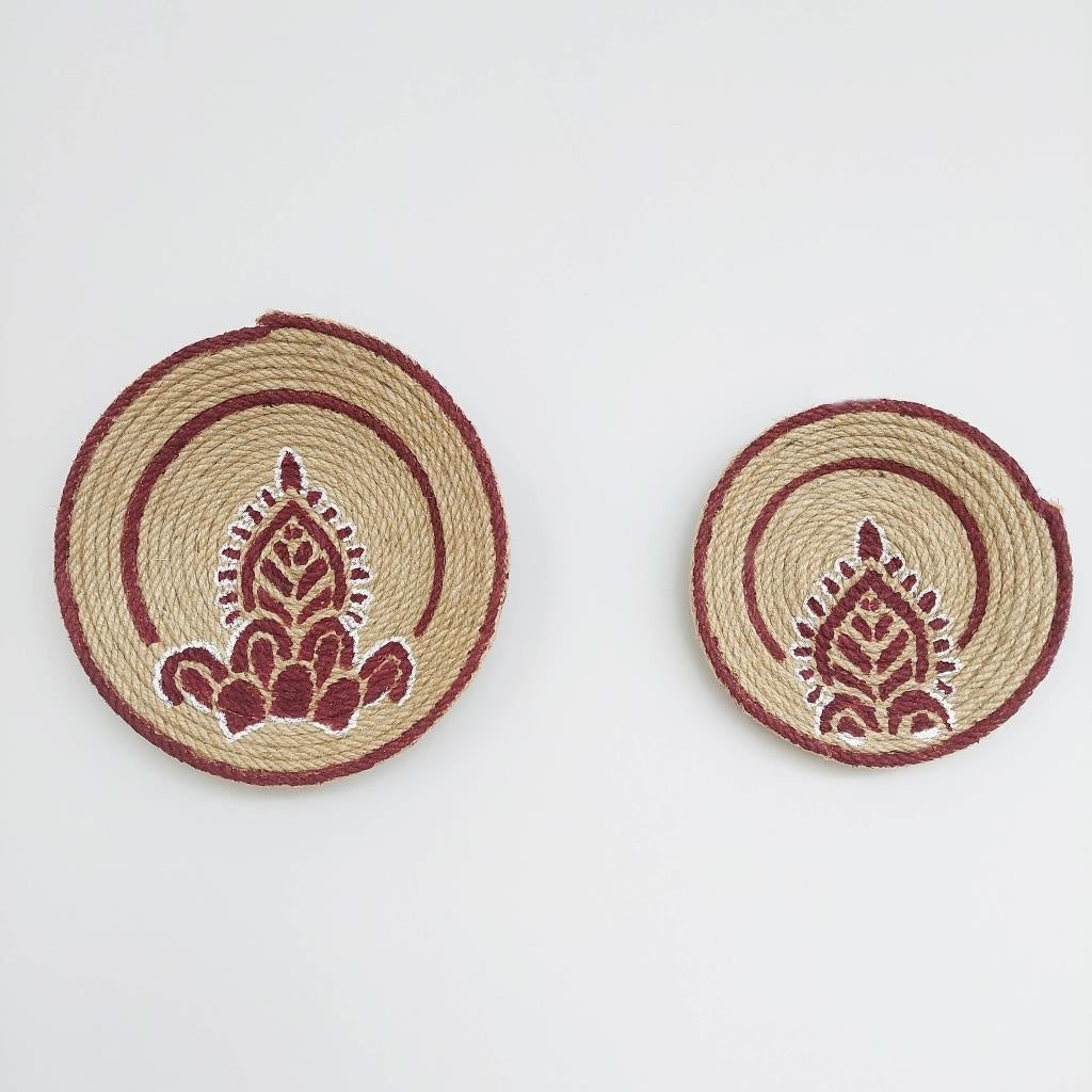 Allen 20-25 cm 2li set El Yapımı Dekoratif Hasır Duvar Tabağı Bohem Afrikan Etnik Ev Dekorasyon Aksesuarı