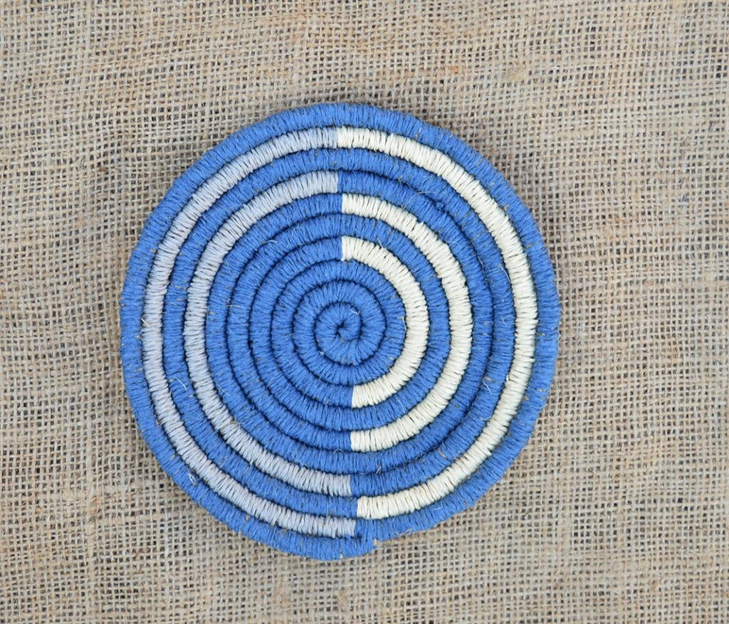 El Yapımı Hasır Duvar Tabağı 12 Cm Mavi - Beyaz